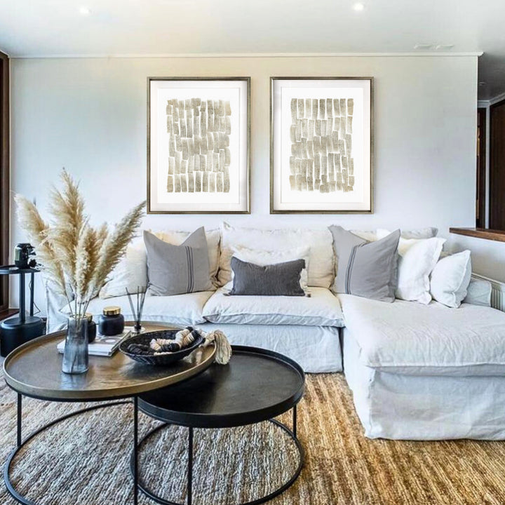 Cuadro (2 unidades) gold brush para pared con marco de madera de mañío e impresión fine art con vidrio