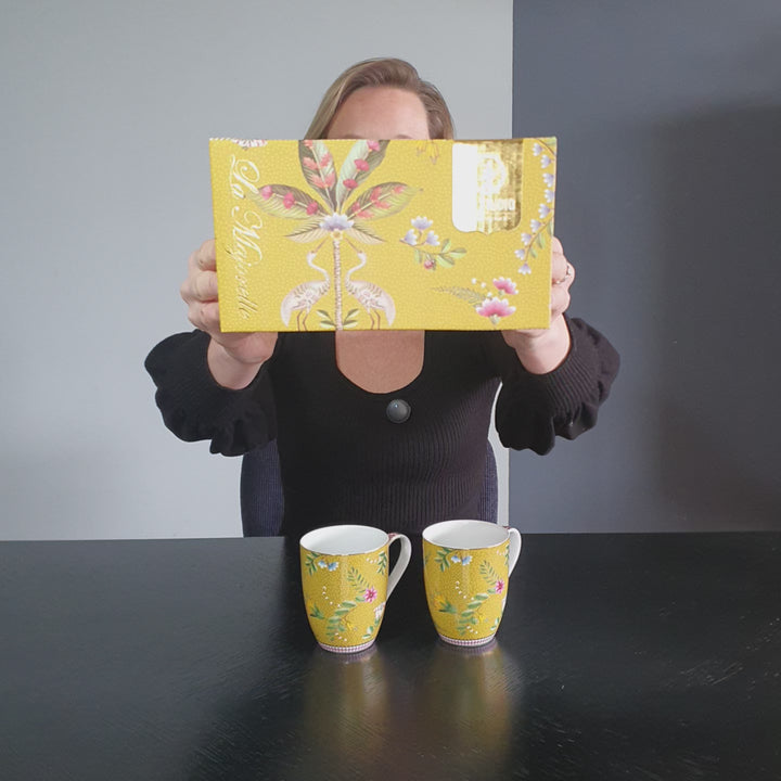 Esta encantadoras tazas de porcelana amarillo de la colección La Majorelle están decoradas con exóticas flores y detalles dorados sobre un fondo rosado.Un diseño delicado y alegre que aporta un...