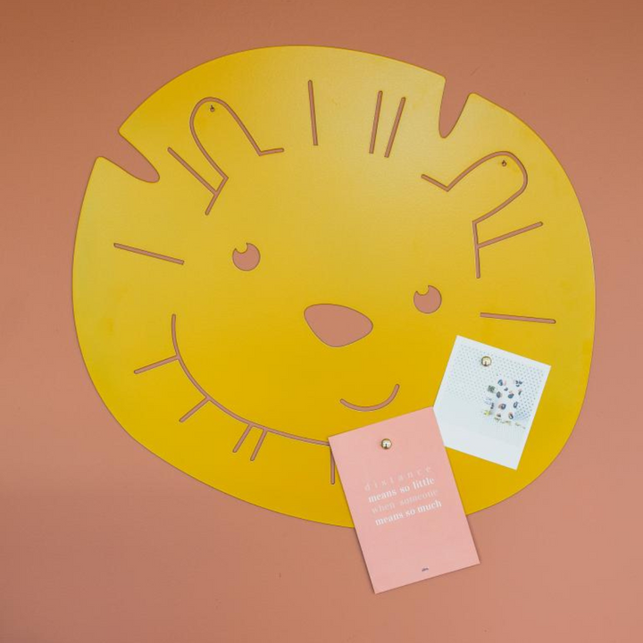 Este tablero magnético con diseño de león es una pieza funcional y decorativa que encaja perfecto en habitaciones infantiles, salas de juegos o cualquier rincón creativo del hogar. Con su simpática figura y amplio tamaño (43 cm de alto x 50 cm de ancho), es ideal para colgar dibujos, notas, fotos o recordatorios.