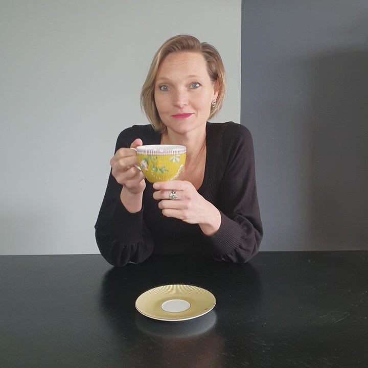 Taza con Plato La Majorelle Amarillo 280ml – Cerámica, Diseño Holandés Original