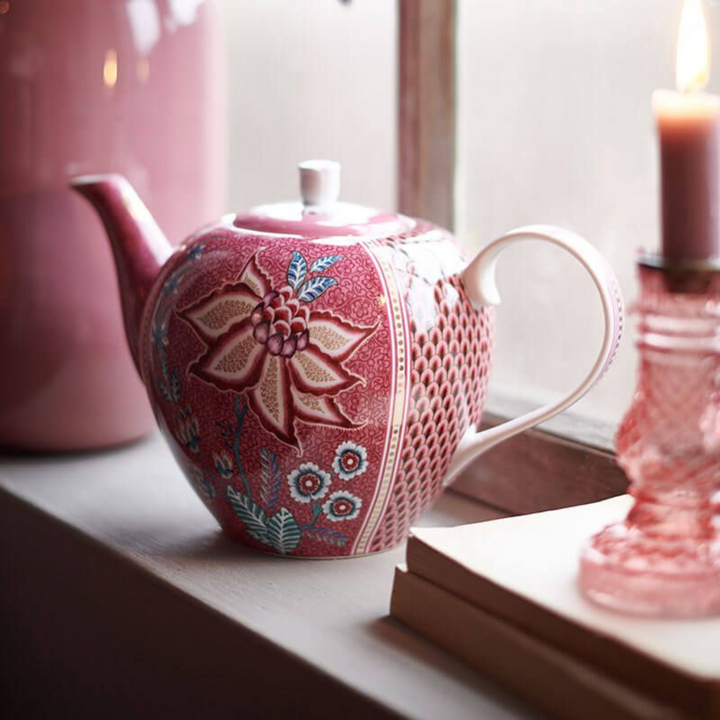 Tetera Tamaño L Festival de Flores Dark Rosado 1.6ltr – Cerámica, Diseño Holandés Original